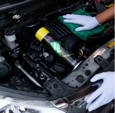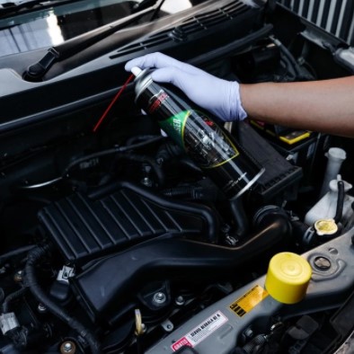 2.Semprotkan sedikit demi sedikit / secara merata ke seluruh ruang mesin.