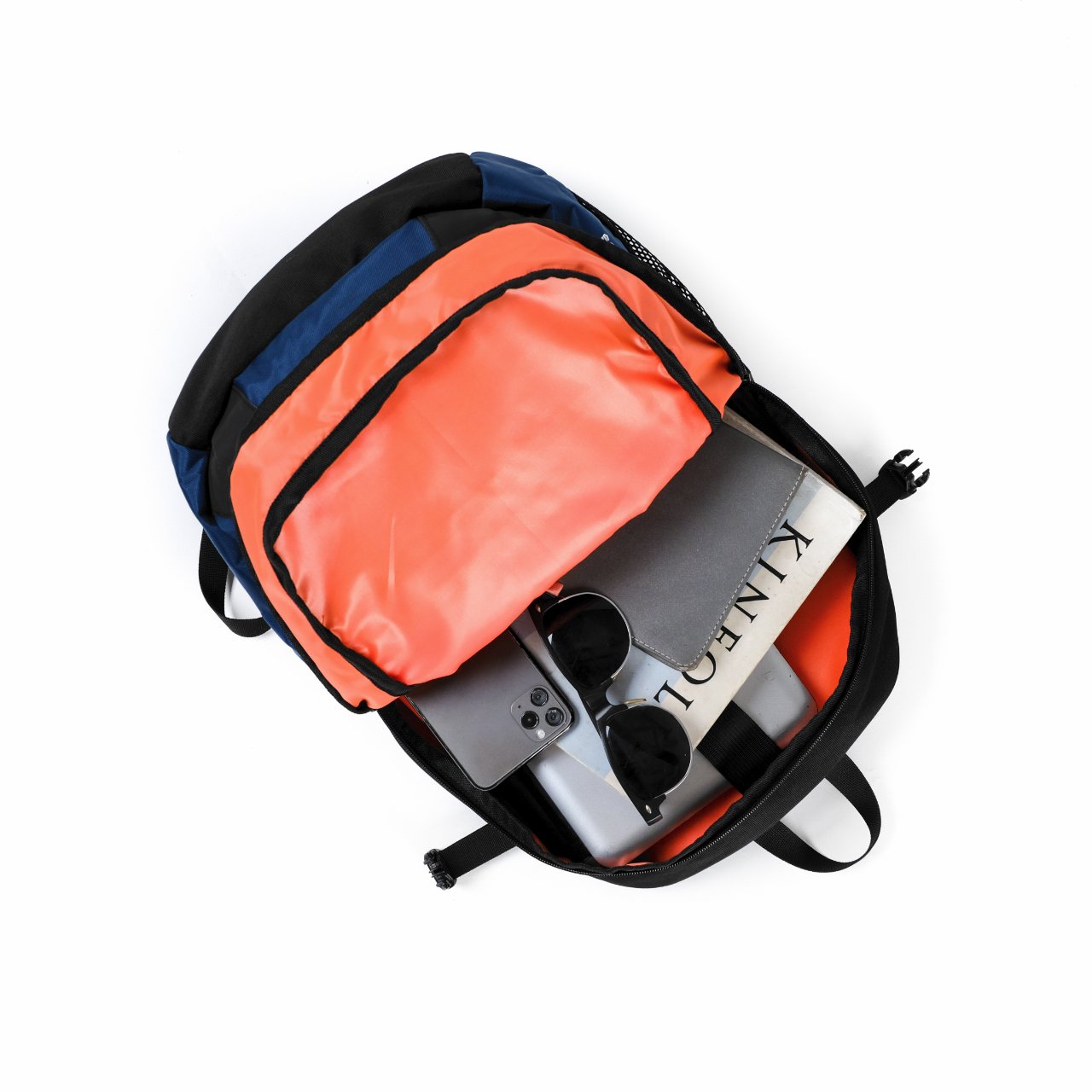 Muat untuk beragam barang seperti notebook A5, Charger pack, dan dompet.
